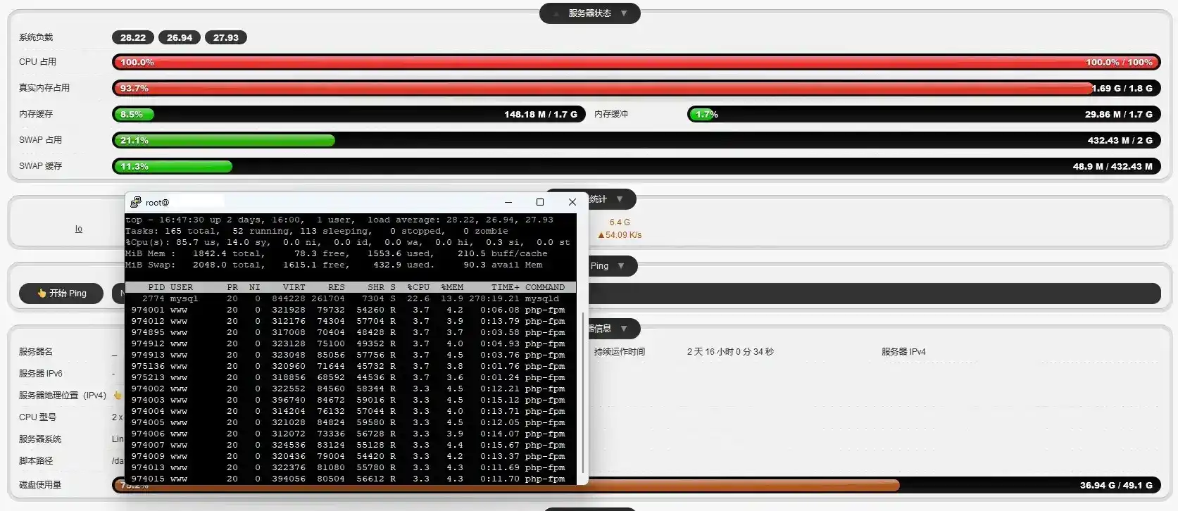 那么,是什么原因会导致报 502 呢?我查看了当前负载,吓了我一跳——