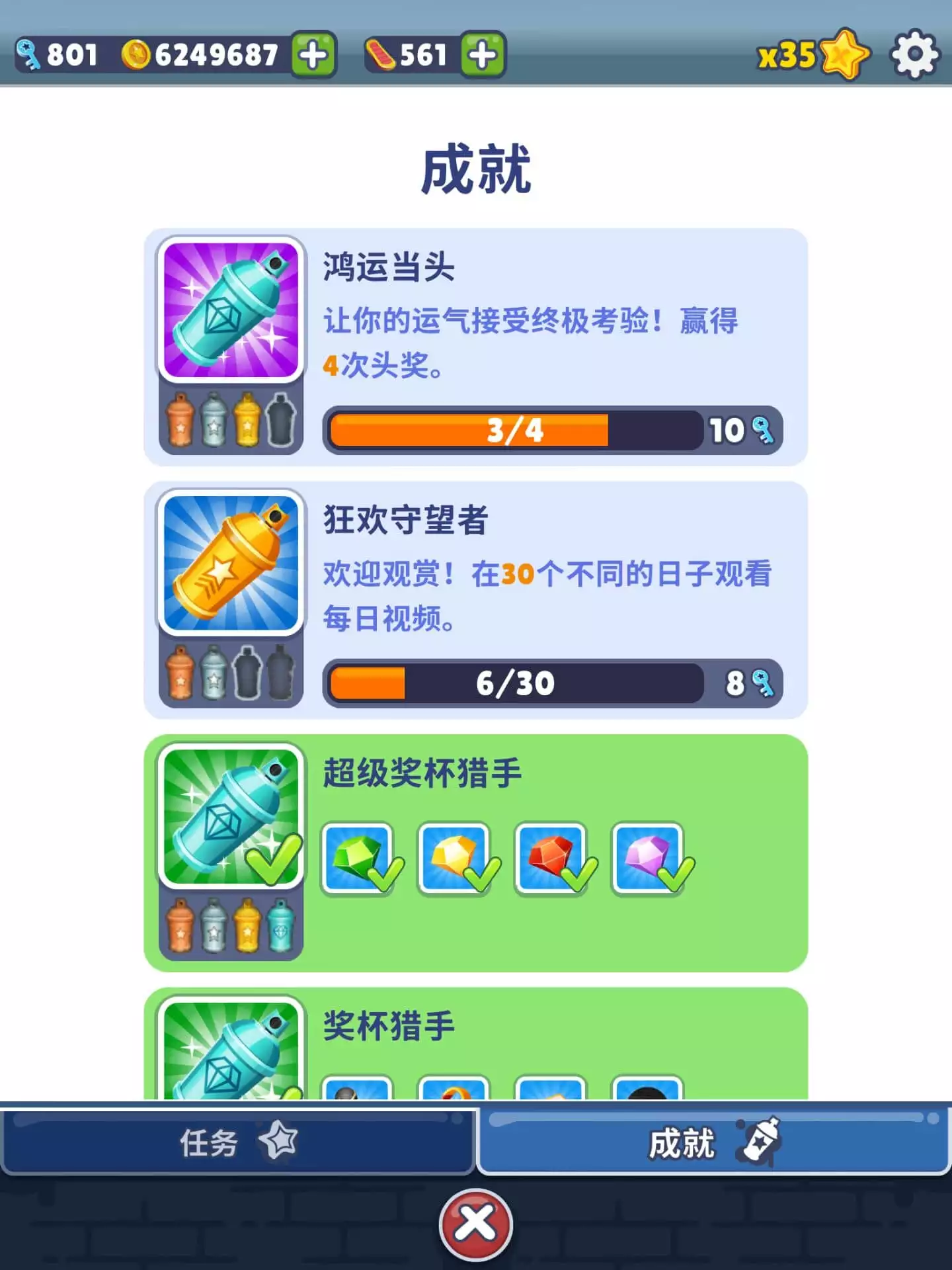 我手机上就俩游戏,都只玩单机模式,相当于休闲游戏;平板上只玩地铁跑酷(国际版),左手看手机右手操作游戏,用那个 Freestyler 滑板(可以高跳+二段跳的那个)以苟延残喘,每天能废掉 100 多个滑板,还好上面金币多(600+ 万,打了三四年的进度);每天的收集都要当天做,强迫症嘛。